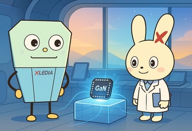 充電器における GaN の役割は、まさにこれらの「発熱、電流、電圧管理」や「電源変換」となります。そこで日本エクスレディアでは、このLED照明領域において培ったノウハウを元に、一般的な GaN 半導体の良さはそのまま、さらなる性能と機能のチューニングを行いました。この独自の次世代 GaN 技術こそ、XGaN です。XGaNは、次の面で進化を遂げています: