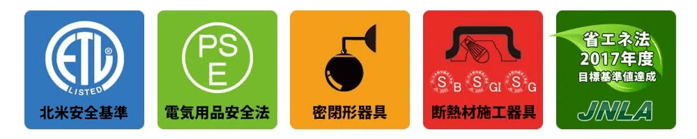 このほか、UL1993 ならびに UL1598(米国国家安全規格)に基づいたテストを行い、日本エクスレディアの全LED電球は密閉型器具に対応しているほか、一部製品については断熱材施工器具への対応についても認定されています。