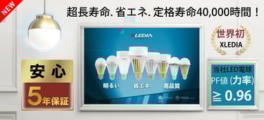 日本エクスレディアのLED製品は長寿命40,000時間設計に、5年保証付帯。