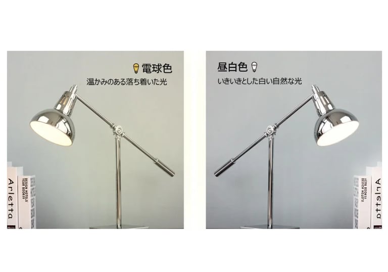 エクスレディアLED製品には、温かみのある落ち着いた雰囲気が特長の「電球色」と、いきいきとした白い自然な光が特長の「昼白色」の2種類があります。お好みに合わせてお選びください。